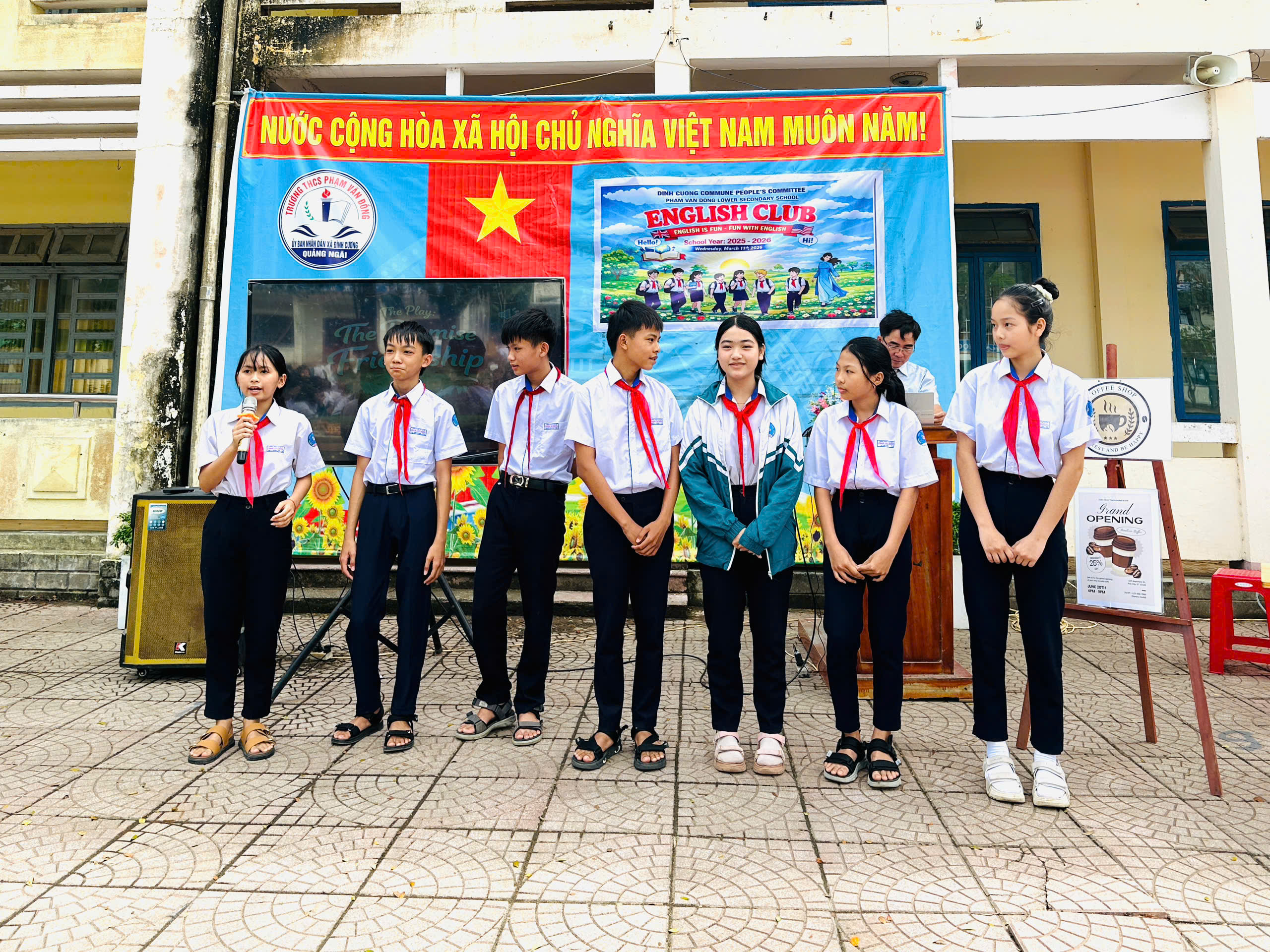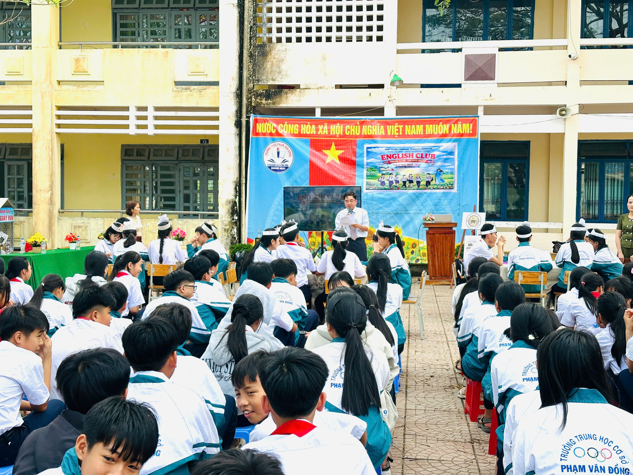 Chiều ngày 12/03/2026, trong không khí tưng bừng và đầy nhiệt huyết, trường THCS Phạm Văn Đồng đã tổ chức buổi sinh hoạt Câu lạc bộ Tiếng Anh (English Club). Đây không chỉ là sân chơi bổ ích để các em học sinh trau dồi vốn ngoại ngữ mà còn là cơ hội để các em tự tin thể hiện bản lĩnh và tinh thần đồng đội.