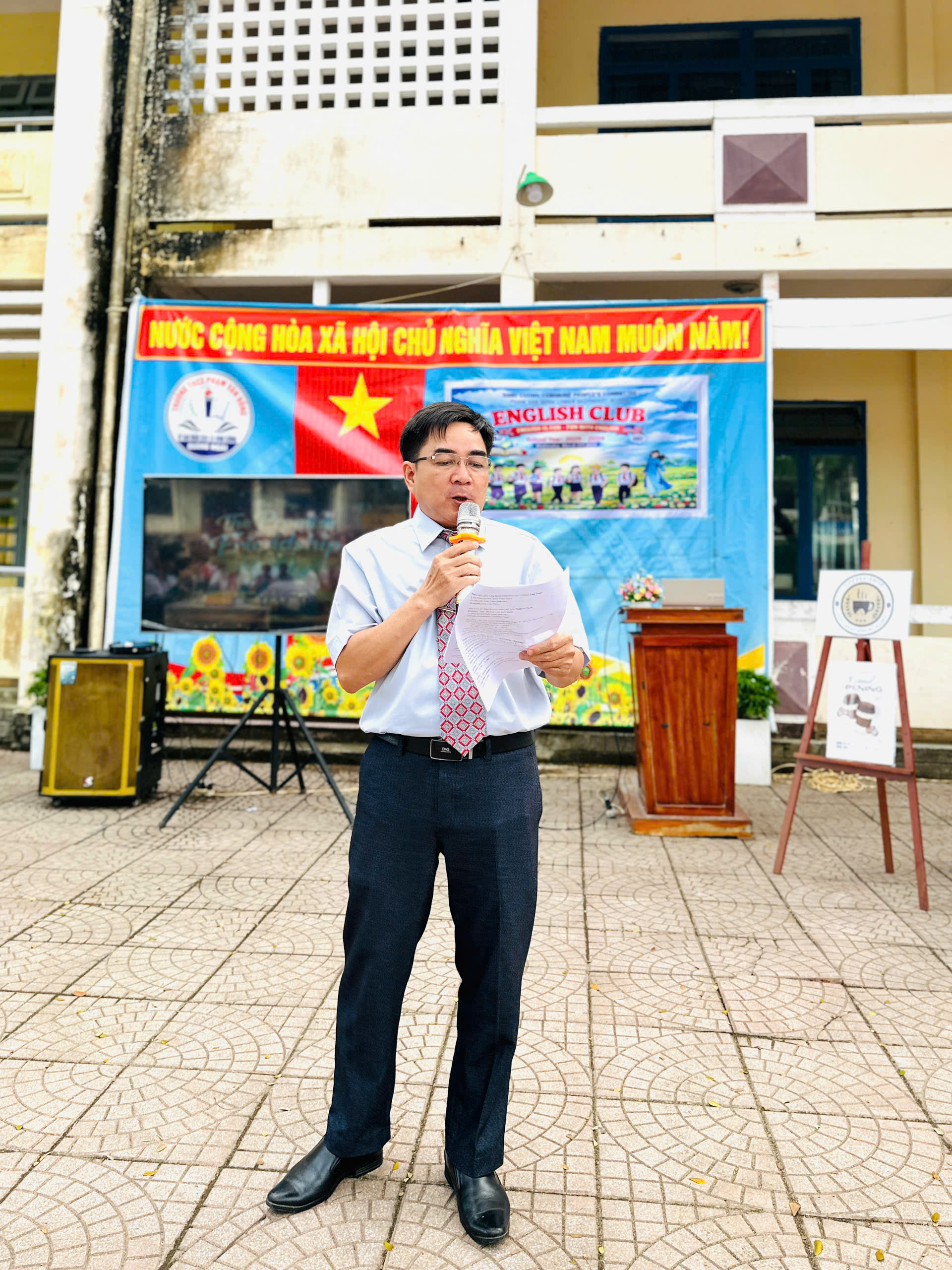 Thầy Phạm Văn Thạch – Phó Hiệu trưởng nhà trường dẫn chương trình, phát biểu khai mạc
